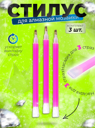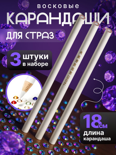 Восковой карандаш для страз длинный 18 см, набор 3 шт волшебный парафиновый карандаш для переноса и выкладки страз для маникюра, алмазной мозаики, рукоделия, декора одежды и аксессуаров