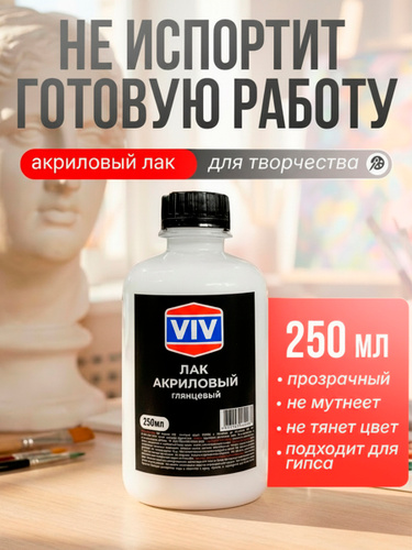 VIV Лак акриловый глянцевый прозрачный для творчества, для картин по номерам, алмазной мозаики, для полимерной глины, 250 мл