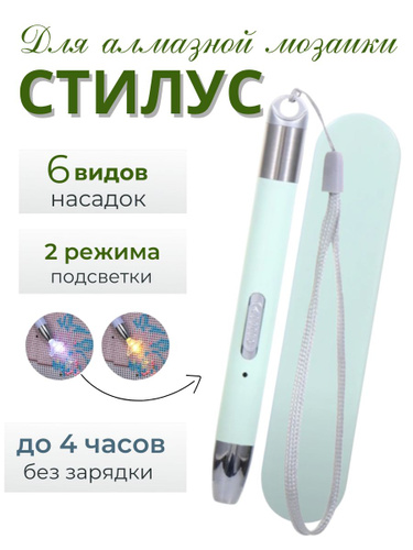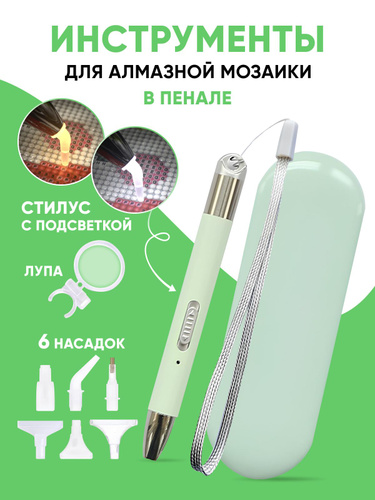 Стилус для алмазной мозаики с подсветкой, ручка для вышивки стразами, набор для рукоделия и творчества