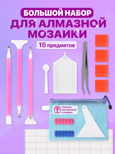 Kids Zone, Набор инструментов для алмазной мозаики вышивки, Большой, 15 предметов