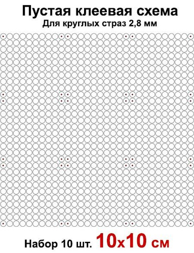 Клеевая схема для алмазной мозаики 10x10 см, 2.8 мм круглые стразы. Набор из 10 штук