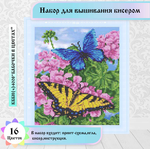 Набор для вышивания бисером Тайвань "Бабочки" 24х19