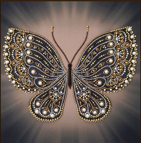 Набор для вышивания бисером и бусинами "Золотая бабочка"/ RK Larkes Н-4131/ 21 х 29 см