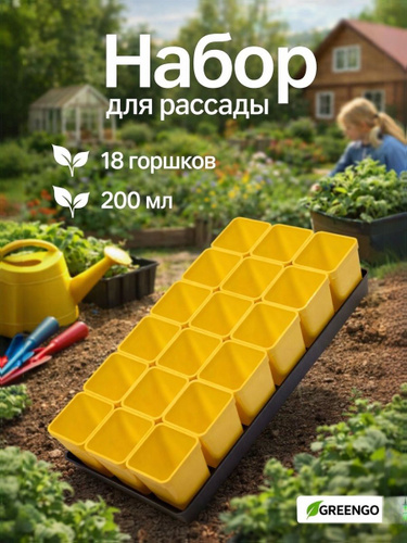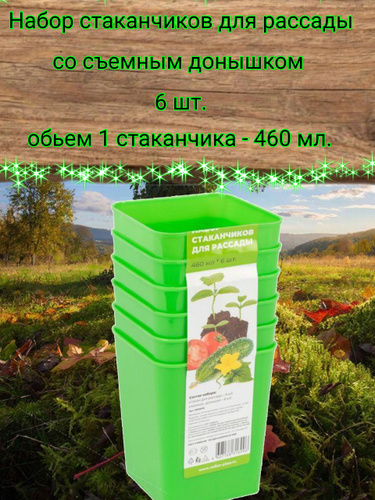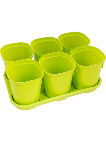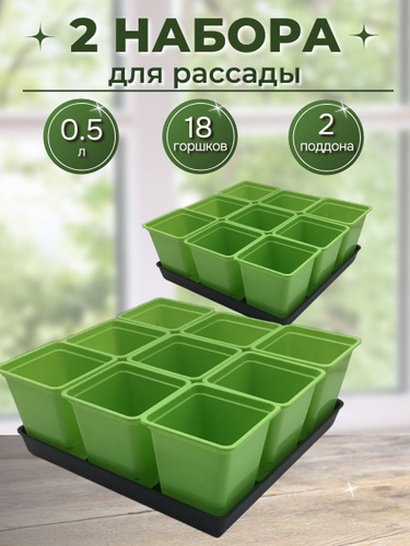 Набор квадратный для рассады с поддоном: горшочки 500 мл 18 шт, зеленые