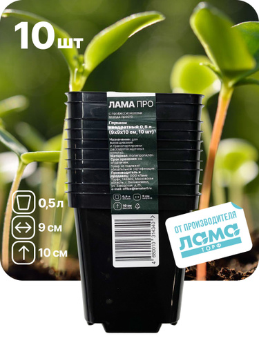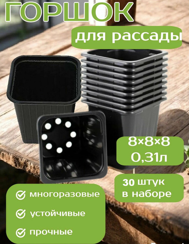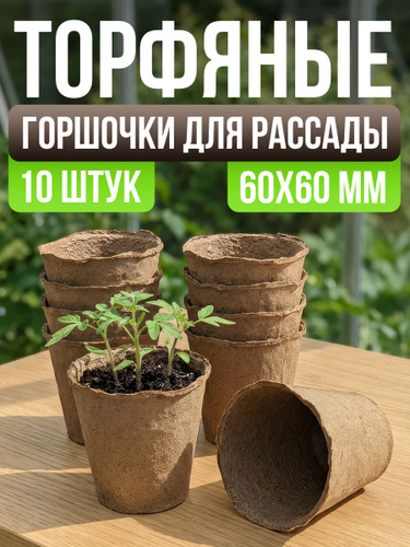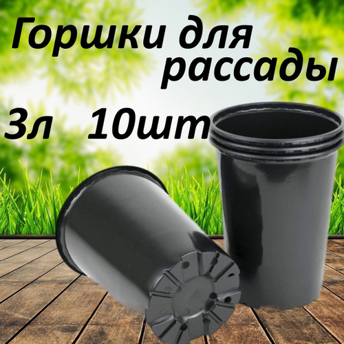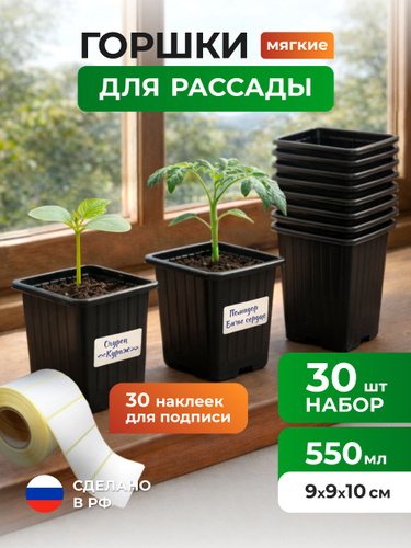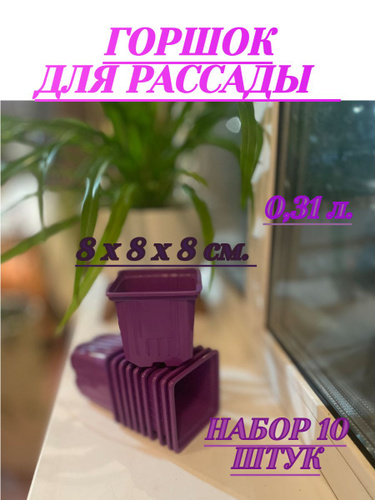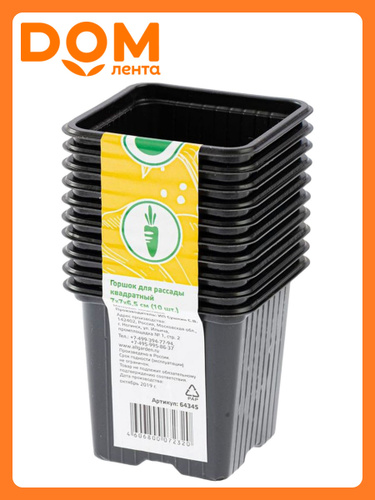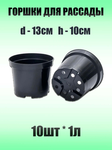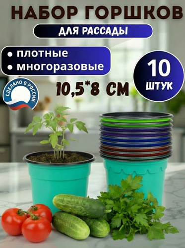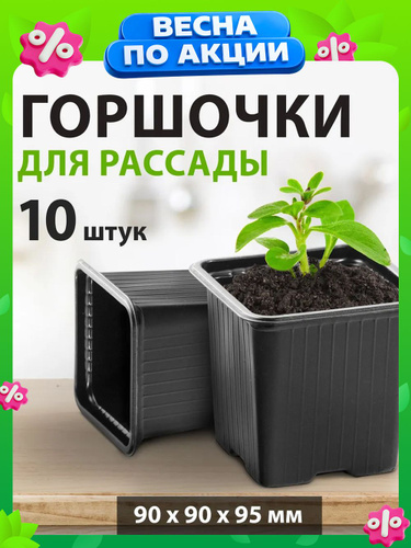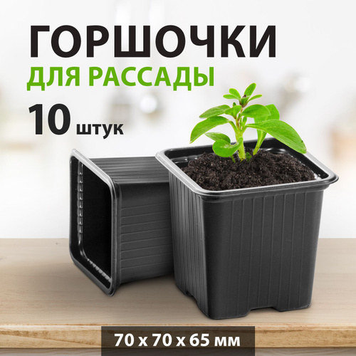 Горшочки для рассады пластиковые 90х90х95 мм, дренажные отверстия и загнутая верхняя кромка, многоразовые стаканчики для рассады, 10 штук, Россия, 64341