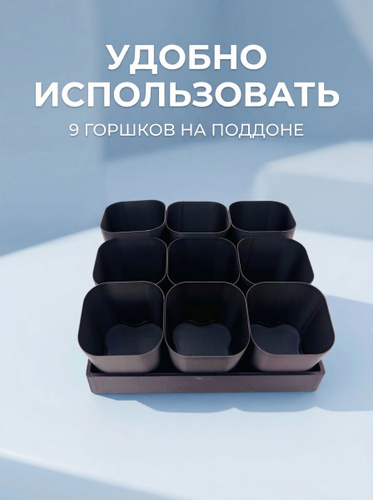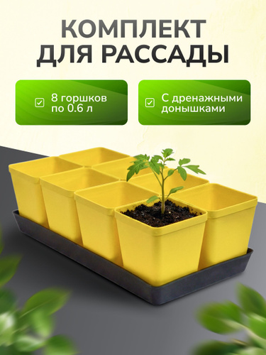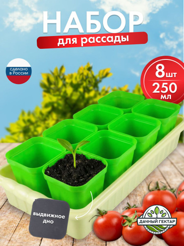 Набор для рассады с поддоном, горшки для выращивания (+ дренажные донышки), кассеты для рассады цветов овощей растений (8 штук по 600 мл)