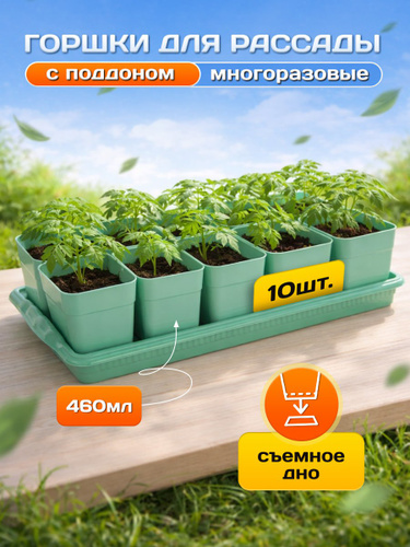 Горшки для рассады с поддоном, набор 10 шт х 460 мл