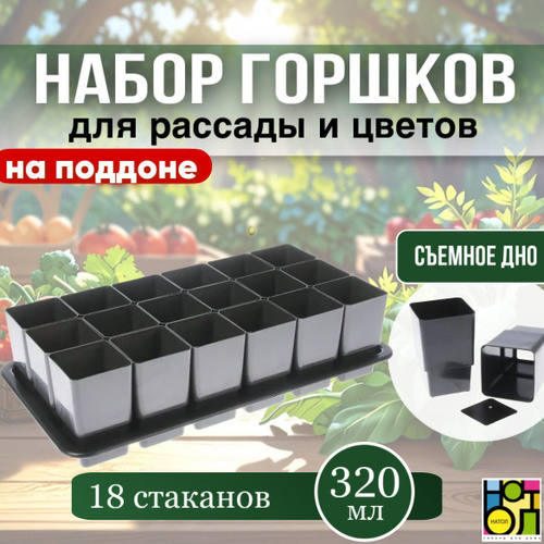 Набор горшков для рассады с поддоном, 18шт. 320мл