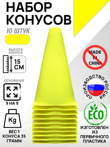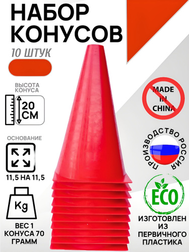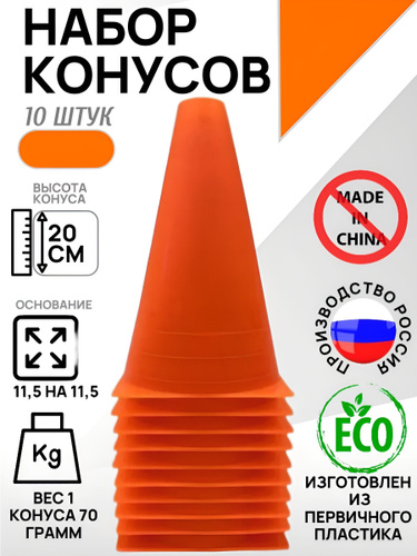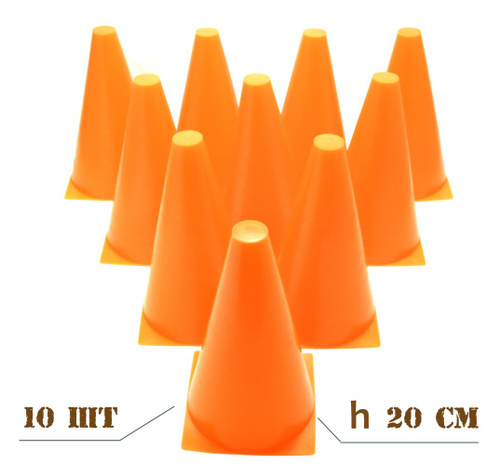 Конусы спортивные, разметочные высотой 20 см, 10 шт.