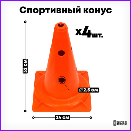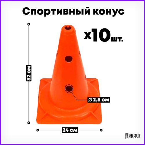 Конус тренировочный MR-K32MO, 32х24х24 см, 9 отв., 2.5 см, мягкий 10 шт.