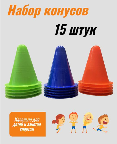 Конусы 15 см, 10 шт. Спортивные, тренировочные, разметочные, фишка, конус дорожный.