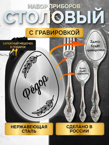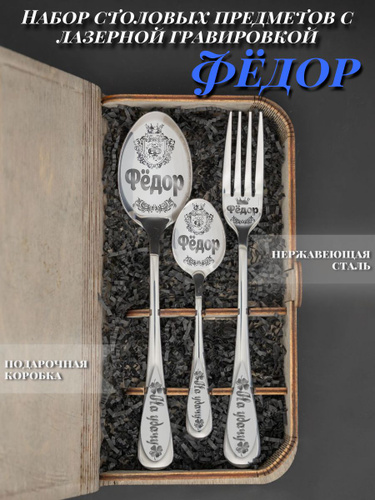 Именной подарочный набор столовых приборов Фёдор. Именные ложки с гравировкой, в подарочной упаковке