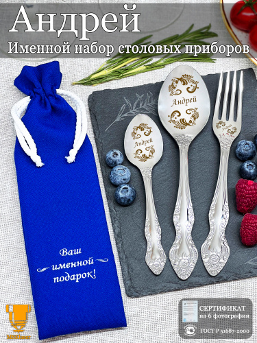 Именной подарочный набор столовых приборов Подари-ложку Андрей, с упаковкой