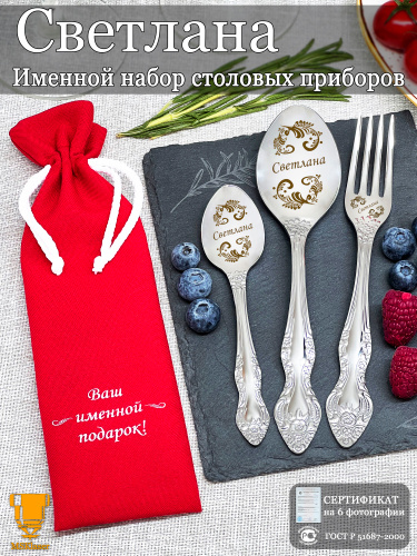 Именной подарочный набор столовых приборов Подари-ложку Валентина, с упаковкой