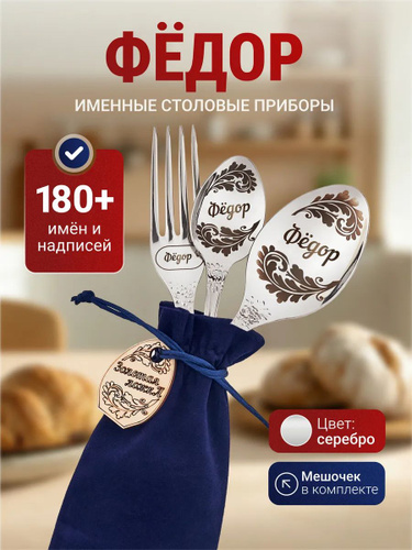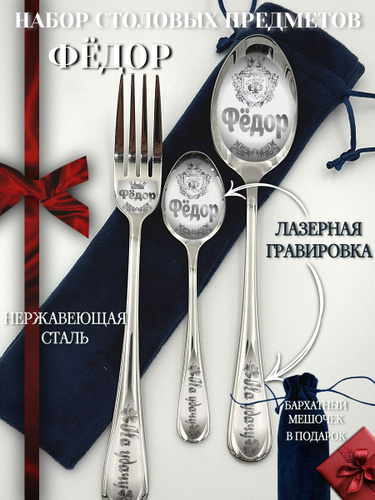 Именной набор столовых приборов Фёдор, в бархатном мешочке
