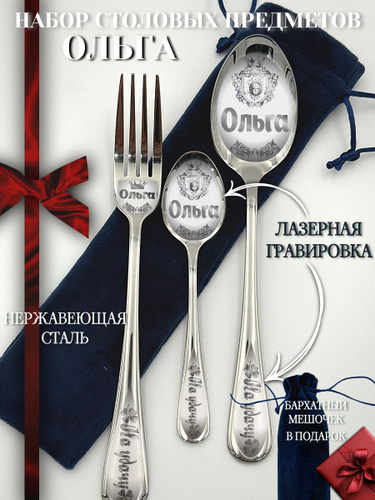 Именной набор столовых приборов Ольга, в бархатном мешочке