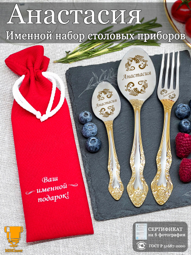 Именной подарочный набор столовых приборов Подари-ложку Анастасия, с упаковкой