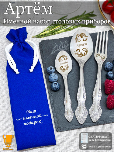 Именной подарочный набор столовых приборов Подари-ложку Артем, с упаковкой