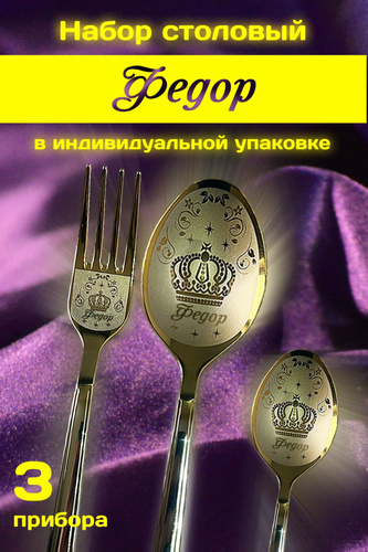 Именной столовый набор приборов Федор из 3-х предметов на подставке