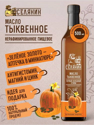 Тыквенное масло холодного отжима сыродавленное 500 мл