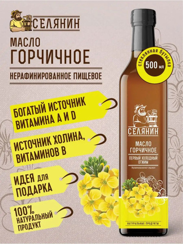 Горчичное масло холодного отжима сыродавленное 500мл.