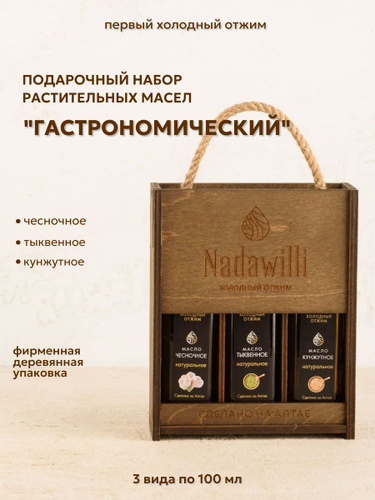 Подарочный набор масел холодного отжима Гастрономический Nadawilli: тыквенное, чесночное, кунжутное, 3х100 мл