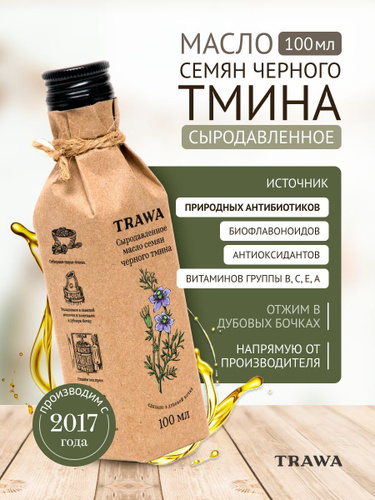 Trawa Масло чёрного тмина сыродавленное 100 мл / Нерафинированное / Холодный отжим