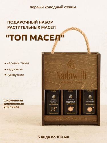 Подарочный набор масел холодного отжима "Топ масел" Nadawilli: масло черного тмина, кедровое, кунжутное, 3х100 мл