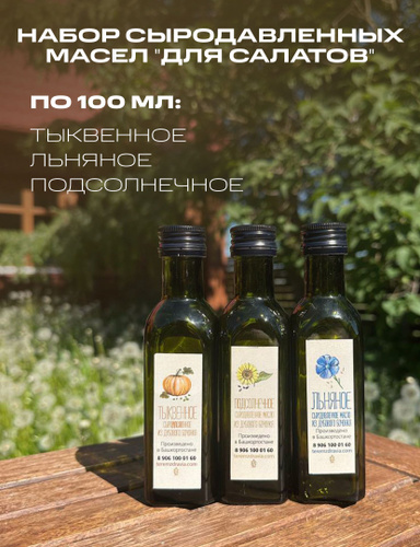 "Идеально для салата" - Набор масел холодного отжима из льна, кунжута и подсолнечника