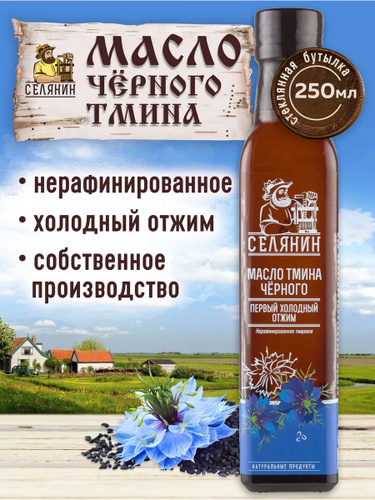 Масло черного тмина холодного отжима сыродавленное 250 мл.
