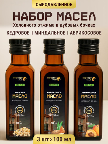 Набор масел миндальное, абрикосовое, масло кедрового ореха нерафинированное, сыродавленное, холодного отжима пищевое. Объем - 100 мл