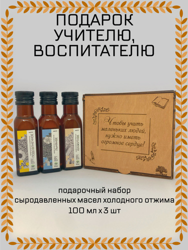 ПользаBAR, Подарочный бокс ко дню учителя, воспитателя, сыродавленные масла холодного отжима 3 шт х 100 мл
