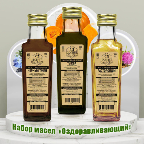 Набор сыродавленных масел кедровое/чёрного тмина/тыквенное