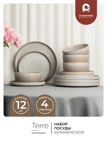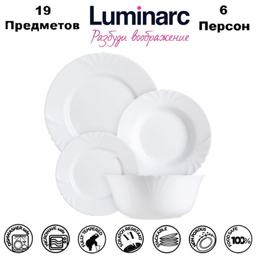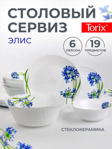 Набор посуды на 6 персон, 19 предметов, сервиз столовый из стеклокерамики TORIX Элис