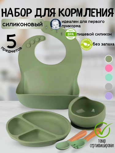 набор посуды для кормления силиконовый 5 предметов