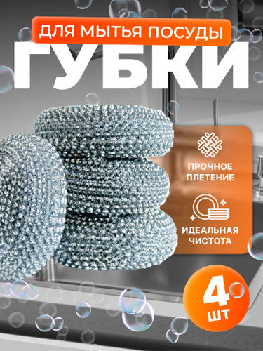 Губка Набор для мытья посуды, ABS пластик, Металлизированная нить, 4 шт.