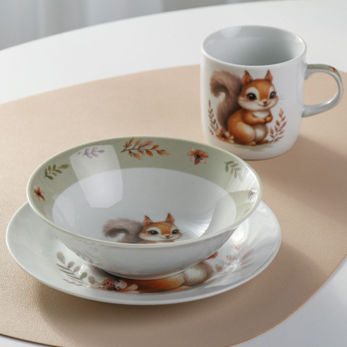 Набор посуды Daniks керамический Белочка, 3 предмета: тарелка 17.5см, салатник 350мл, кружка 230мл, для СВЧ и ПММ