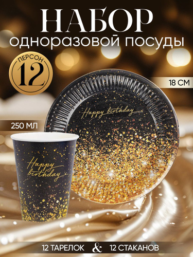 Набор бумажной посуды "Happy Birthday", 12 персон