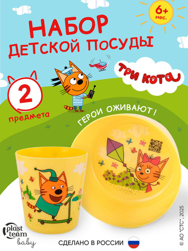 Plast team Набор детской посуды для кормления Три Кота 2 предмета - миска и стакан