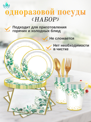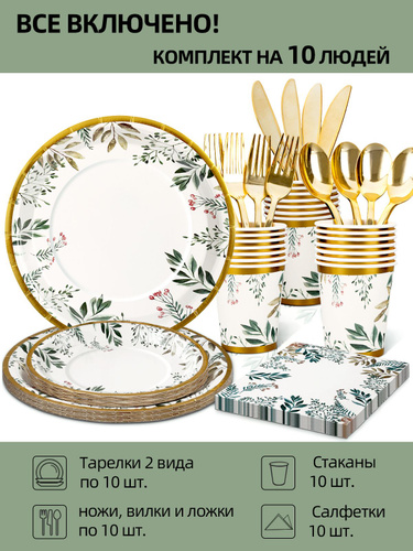 Cleva одноразовая посуда для праздника,набор на 10 персон,для сервировки стола на день рождения, пикник и вечеринку