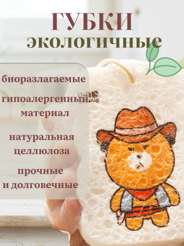 Губки для мытья посуды из целлюлозы, биоразлагаемые, экологичные губки, набор губок 4 шт. 8,5 см х 6,5 см, Home Oasis