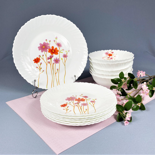 Набор посуды на 6 персон, 13 предметов, сервиз столовый из стеклокерамики TORIX "Валенсия"