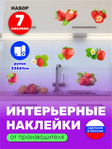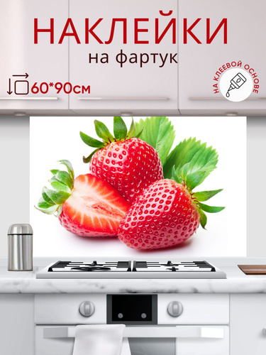 Декоративная наклейка для кухни "Три клубники" 60х90 см. Наклейка на стену. ArteNuevo