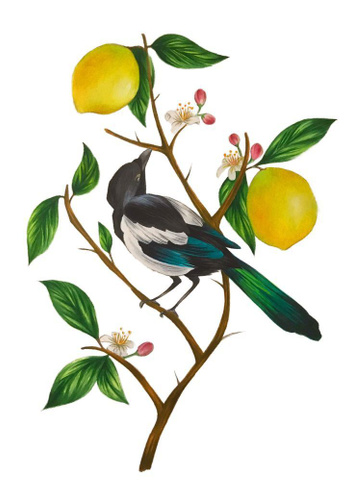 Наклейки на стену для декора интерьера,для украшения комнаты,мебели,детской "Птички и фрукты"