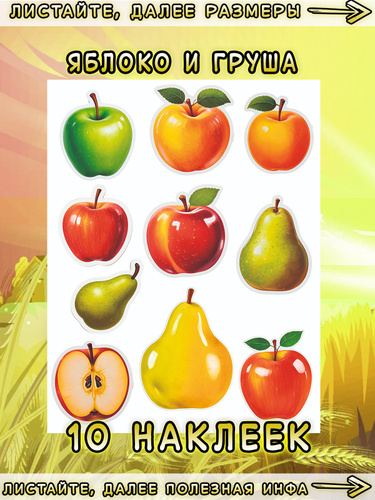 Интерьерная 3D наклейка для декора "Фрукты яблоки" на стену,стекло,мебель,на холодильник,на крышку унитаза