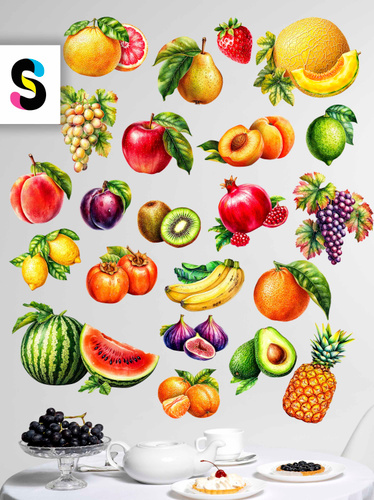 Интерьерные 3D наклейки для декора "Яркие фрукты" на стену,мебель,на холодильник,на плитку