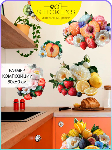 Наклейки на стену для декора интерьера,для украшения кухни фрукты