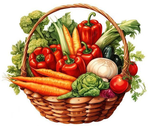 Интерьерные 3D наклейки для декора "Корзина с овощами" на стену,мебель,на холодильник,на плитку