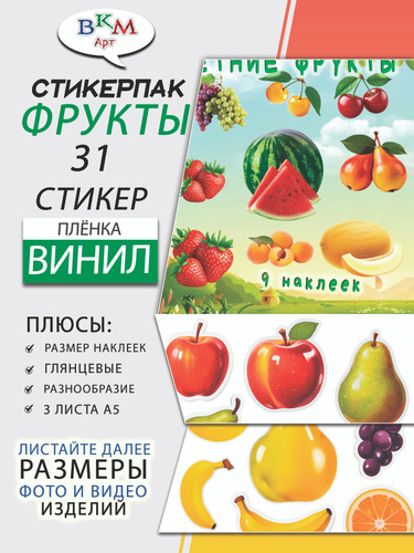 Наклейки, интерьерные на холодильник и стены, ИНФОМАГ, фрукты