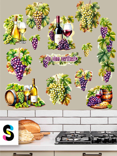 Интерьерные 3D наклейки для декора "Виноград" на стену,мебель,на холодильник,на плитку